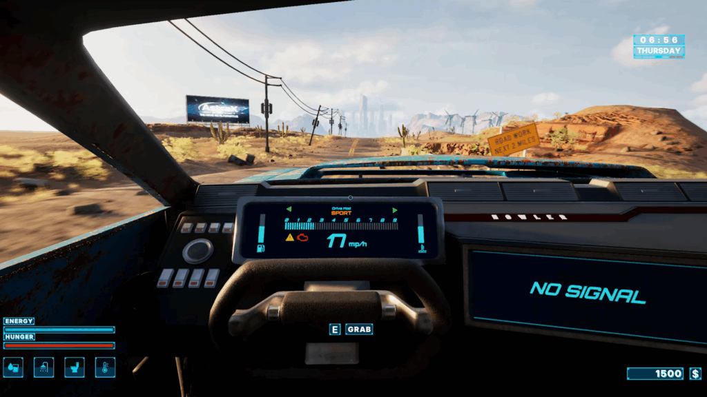 • Dynamic weather and time of day — Scorching heat, sandstorms, and neon-lit nights in the megacity create atmosphere and directly affect driving and survival.